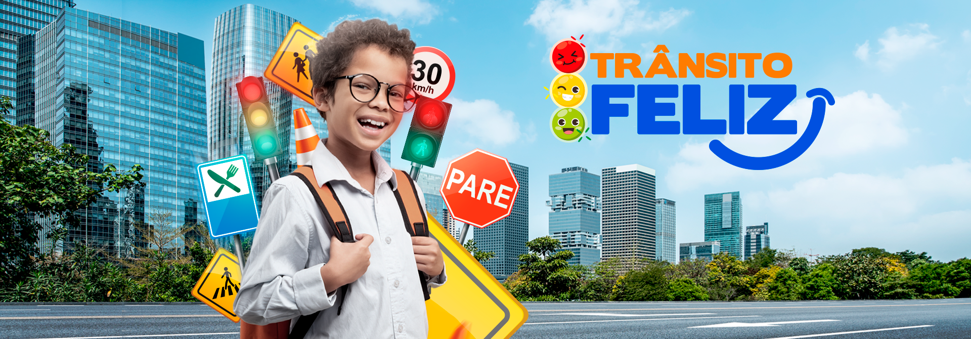 O Trânsito Feliz ensina comportamentos seguros a crianças, jovens e adultos com uso de tecnologia, baseado no Código de Trânsito Brasileiro.